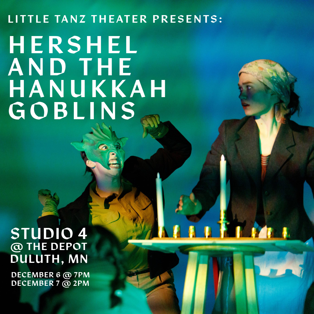 Hershel and the Hanukkah Goblins is back! Based on the children’s book by Eric Kimmel, and Trina Schart Hyman this original, family-friendly, contemporary and Yiddish dance production is hitting the road and heading to Duluth. Catch us at Minnesota Ballet’s Studio 4 at the Depot December 6-7.