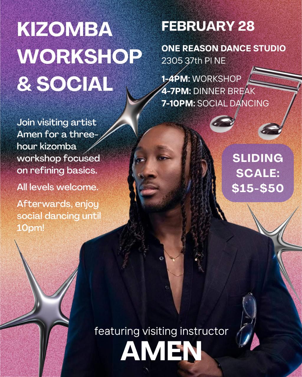 Amen is a long-time Kizomba instructor based out of Columbus, OH, who teaches Kizomba and Urban Kiz locally and across North America. He is excited to come to Minneapolis to share his knowledge and dance with us.
