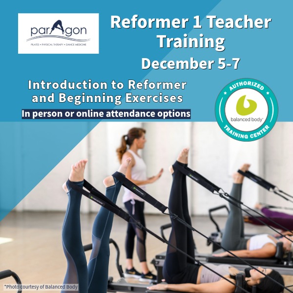 Pilates Instructor Training at Paragon Pilates & Physical Therapy Dates: Nov. 7-9, 2025 Friday 4pm-8pm Saturday 11:30am-6pm Sunday 9:30am-4:30pm Fee: $499 + $60 materials ($549 after Oct. 18) Mat 2 teaches the remaining intermediate and advanced level Mat exercises for a complete understanding of the Pilates Mat program. Lectures include progressive skill development to achieve … Continued