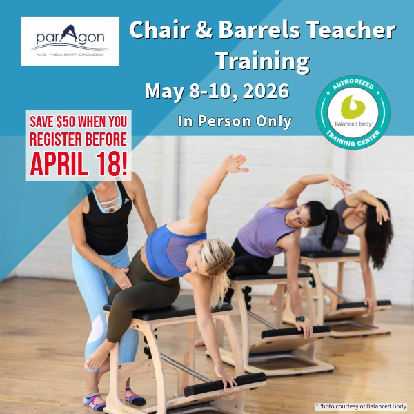 Balanced Body® Pilates Chair and Barrels Instructor Training: This weekend module encompasses both the Pilates Chairs and the Pilates Barrels courses. The Pilates chair is great for strengthening athletic clients, and as an addition to group programming. The chair can be used to incorporate standing and upright core work into a client’s studio experience. This course includes exercises, programming, and variations for the original Wunda Chair, the EXO Chair, and the split pedal Combo Chair.