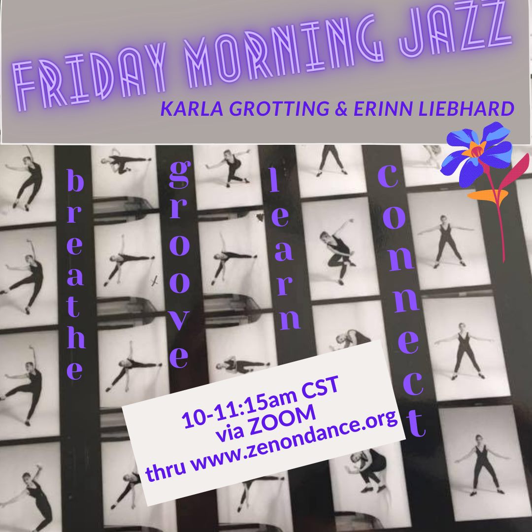Erinn Liebhard is back at it teaching Friday Morning Jazz class through Zenon Dance School (March 26-May 28, 2021) this Friday, April 16!