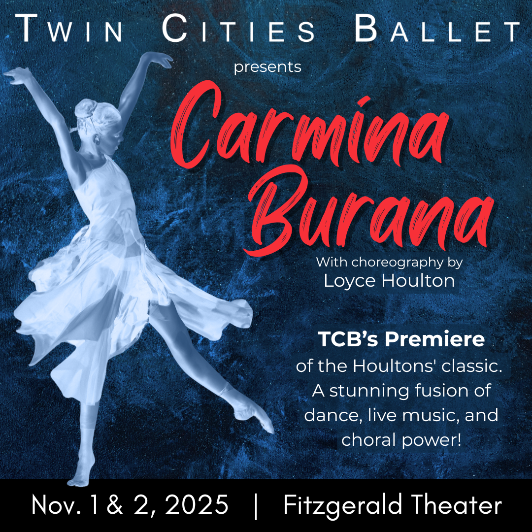 Love and lust ignite the stage in Twin Cities Ballet’s (TCB) bold revival of Loyce Houlton’s acclaimed Carmina Burana—a raw, sensuous journey set to Carl Orff’s epic score.